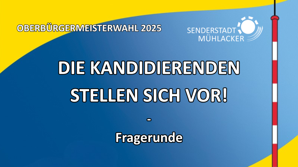 Am Donnerstag, 9. Oktober 2025 haben sich die sechs Kandidierenden für das Amt des neuen Oberbürgermeisters oder der neuen Oberbürgermeisterin in der Enztalsporthalle in Mühlacker den Einwohnerinnen und Einwohnern vorgestellt. Die Aufzeichnung der Veranstaltung ist hier zu finden.