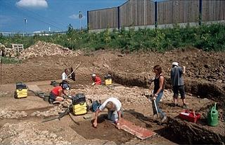 Überraschungen Am Sonntag, den 10. September, dem internationalen "Tag des offenen Denkmals" hat der neu gegründete Historisch-Archäologische Verein Führungen um 11.00, 14.00, 15.00 und 16.00 Uhr organisiert; Adelheid Teschner vom Heimatmuseum zeigt von 15.00 Uhr an römische Funde aus Mühlacker und Umgebung. Da die sichtbare Erhaltung der Gesamtanlage aus finanziellen Gründen sehr ungewiss ist, besteht dann vielleicht die letzte Möglichkeit, die römischen Ruinen in diesem Umfang sehen zu können. Der Mühlacker Gemeinderat entscheidet am 19. September über den Umfang der späteren Konservierung. Bislang sind 250.000,- DM vorgesehen, womit nur ein kleiner Teil sichtbar bleiben kann. |