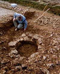 Offen ist der Standort dieser Säule und der Verbleib der restlichen Teile. Vielleicht lässt sich im Umfeld des Brunnens noch manches finden? Offen ist auch noch die Auswertung der geophysikalischen Prospektion im Mai 2000 auf der alten B 10 und süd-östlich der neuen B 10. Weitere Überraschungen sind zu erwarten. Wir werden darüber berichten. |